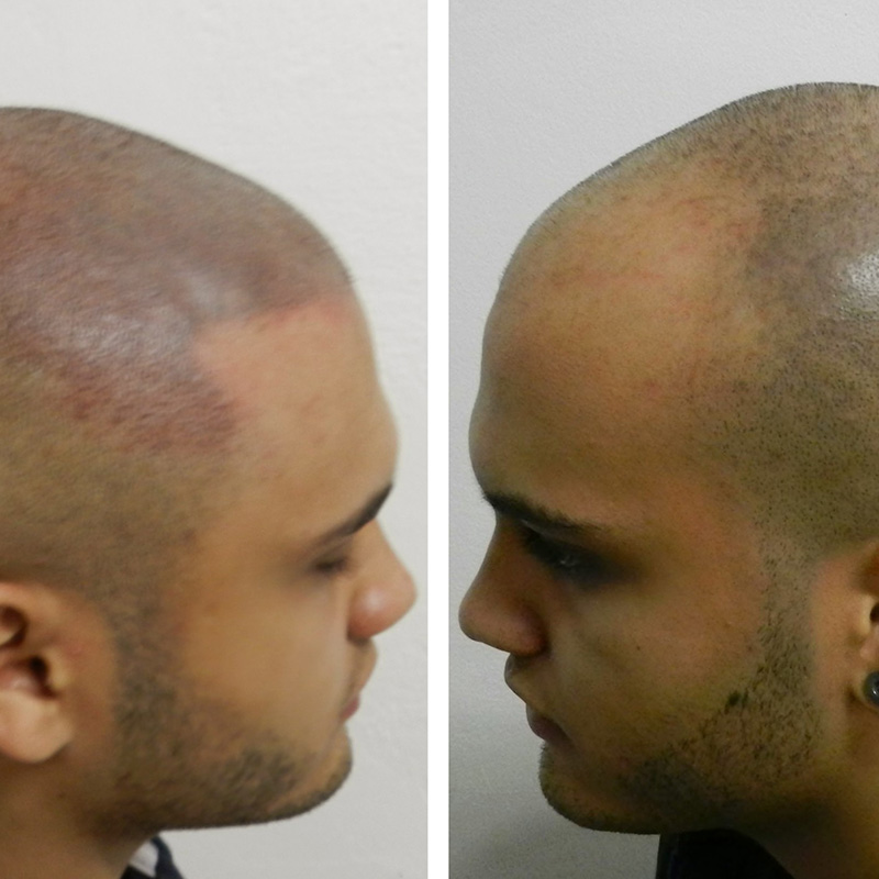 A micropigmentação capilar é uma alternativa perfeita, pois tem um resultado imediato, a recuperação é completamente tranquila, a persepção é suave e a durabilidade é de 5 a 8 anos.